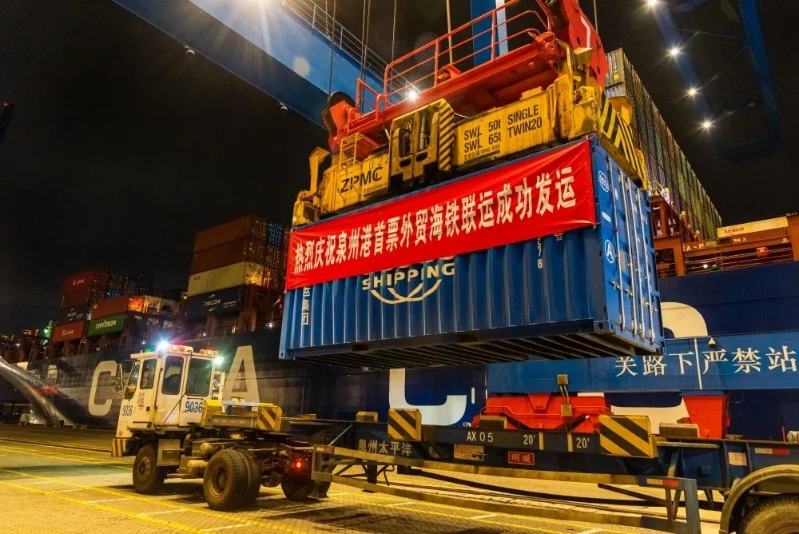 2024年11月24日,正利长沙轮顺利靠泊石湖码头,泉州太平洋码头迎来了历史性的一刻——首票江西外贸货物从江西鹰潭国际港通过海铁联运顺利抵达泉州石湖港,再通过泉州太平洋码头外贸航线出口至东南亚,标志着泉州外贸海铁联运首次成功实践。